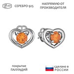 Серебряные серьги гвоздики (пусеты) с натуральным цитрином (мадейра) - Сердце / покрытие Палладий.