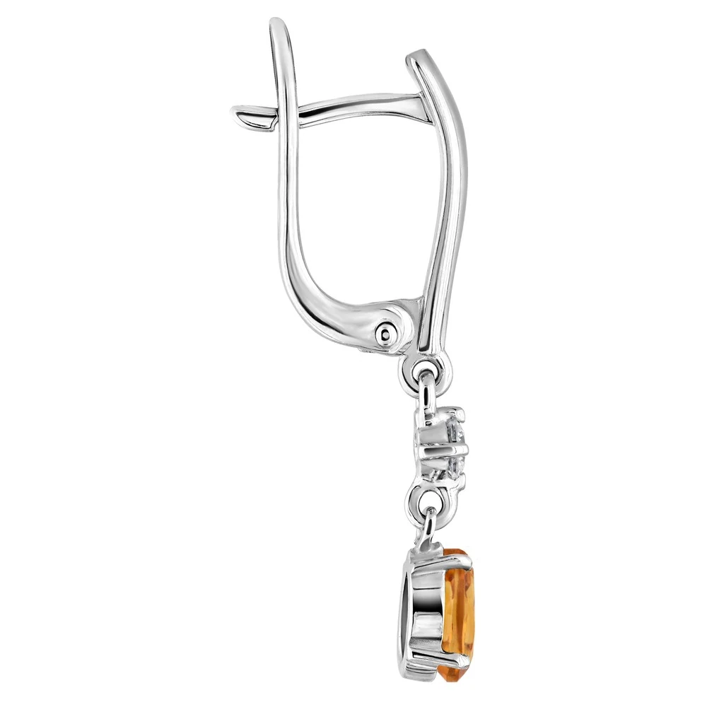 Серебряные серьги с натуральным цитрином - коллекция Алсу (малая) / Белый Родий.