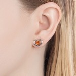Серебряные серьги гвоздики (пусеты) с натуральным цитрином (мадейра) - Сердце / покрытие Розовое Золото.