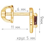 Серебряные серьги гвоздики (пусеты) с натуральным гранатом - Сердце / покрытие Желтое Золото.