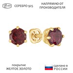 Серебряные серьги гвоздики (пусеты) с натуральным гранатом 5 мм. / Желтое Золото.