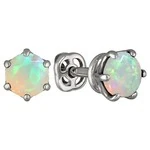 Серебряные серьги гвоздики (пусеты) с натуральным опалом (Экстра) 5 мм. / Палладий.