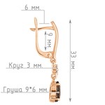 Серебряные серьги с натуральным раухтопазом - коллекция Алсу (большая) / Красное золото.