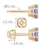 Серебряные серьги гвоздики (пусеты) с натуральным танзанитом (2 класс) 5 мм. / Розовое Золото.