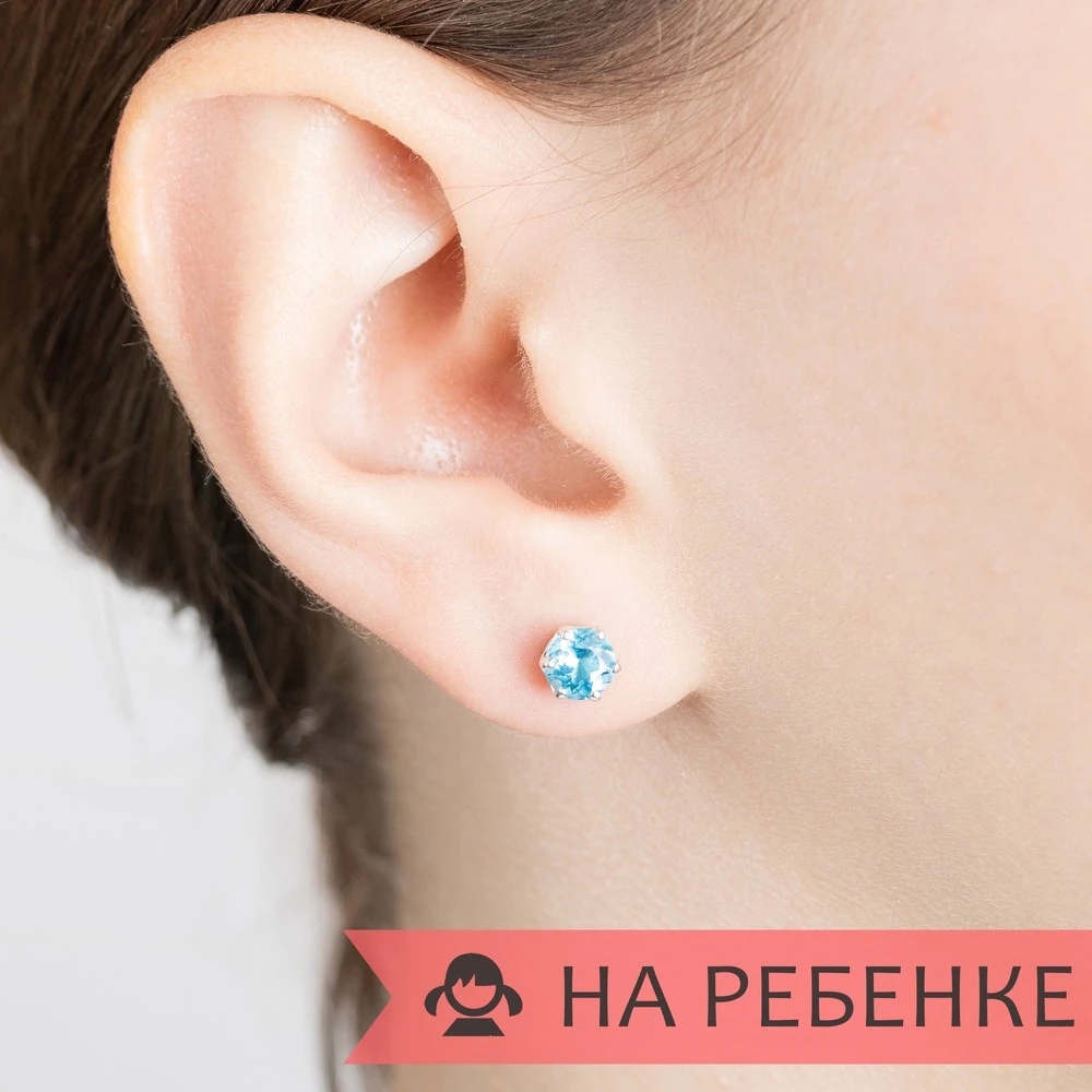 Серебряные серьги гвоздики (пусеты) с натуральным голубым топазом (Swiss) 5 мм. / Чистое Серебро.