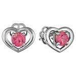 Серебряные серьги гвоздики (пусеты) с натуральным турмалином (2 класс) - Сердце / покрытие Палладий.